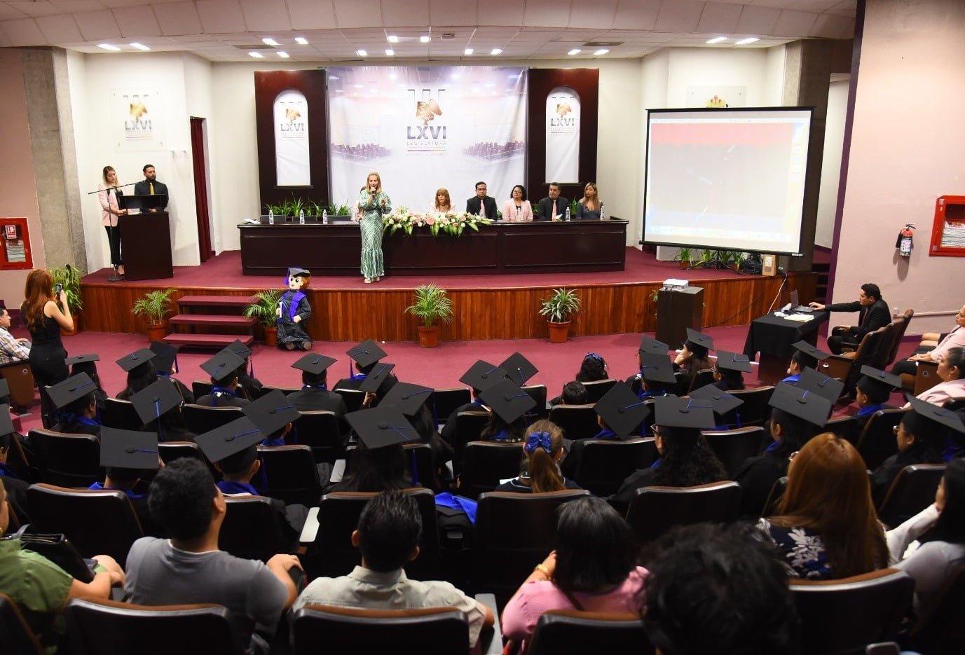 En el acto de fin de cursos y entrega de documentos, la Presidenta de la Comisión Permanente de Derechos de la Niñez y la Familia, como madrina de generación, alentó a las y los estudiantes a descubrir su vocación, perseverar en sus propósitos y forjarse un futuro digno.