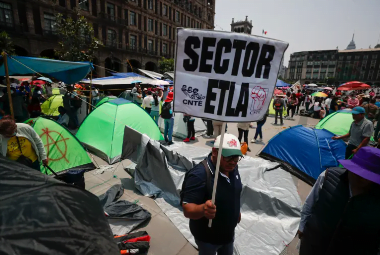 La CNTE reubicará el plantón que tiene en el Zócalo capitalino, ante la movilización de Marea Rosa programada para la mañana del domingo 19 de mayo.