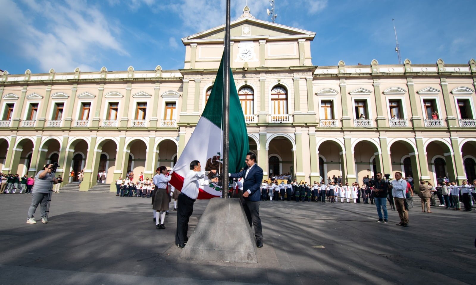 Córdoba, Ver., (24 de febrero de 2023). – Con el abanderamiento a 25 instituciones escolares de los tres niveles educativos, este viernes, autoridades municipales encabezadas por el Presidente Municipal, Juan Martínez Flores, llevaron a cabo en la explanada del Parque 21 de Mayo, el acto cívico en Conmemoración del Día de la Bandera Nacional.