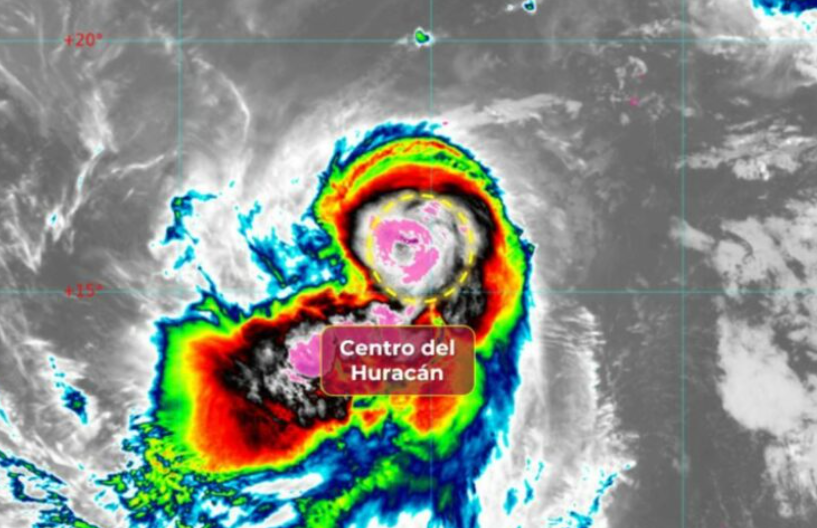 El meteoro presenta vientos máximos sostenidos de 150 km/h, rachas de 185 km/h y desplazamiento hacia el oeste a 24 km/h.