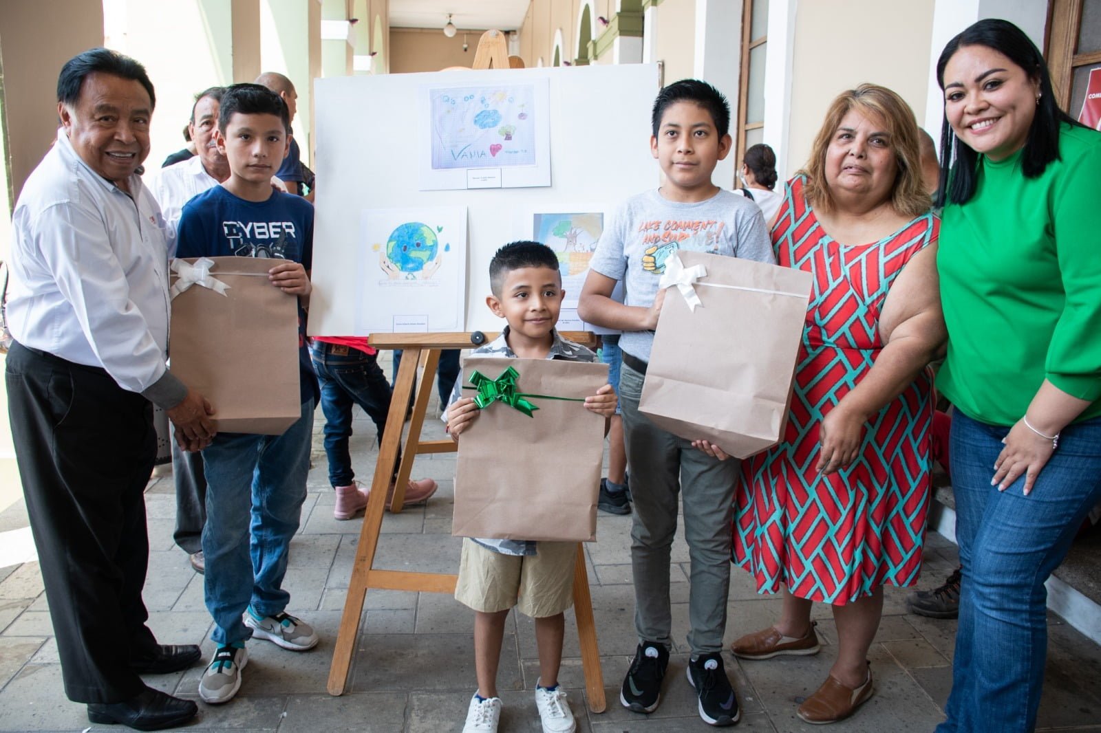 En los bajos del palacio municipal fueron expuestos 22 dibujos realizados por niñas y niños, quienes plasmaron mensajes alusivos a la ecología, sobre el reciclaje, el cuidado del agua, mantener limpia la ciudad, la reforestación, entre otros.