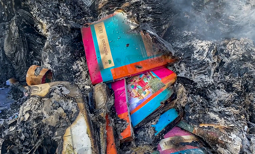 Estos libros eran destinados a más de 700 niños y niñas que alberga la escuela Benito Juárez, enviados por la SEP para iniciar el ciclo escolar 2023-2024.