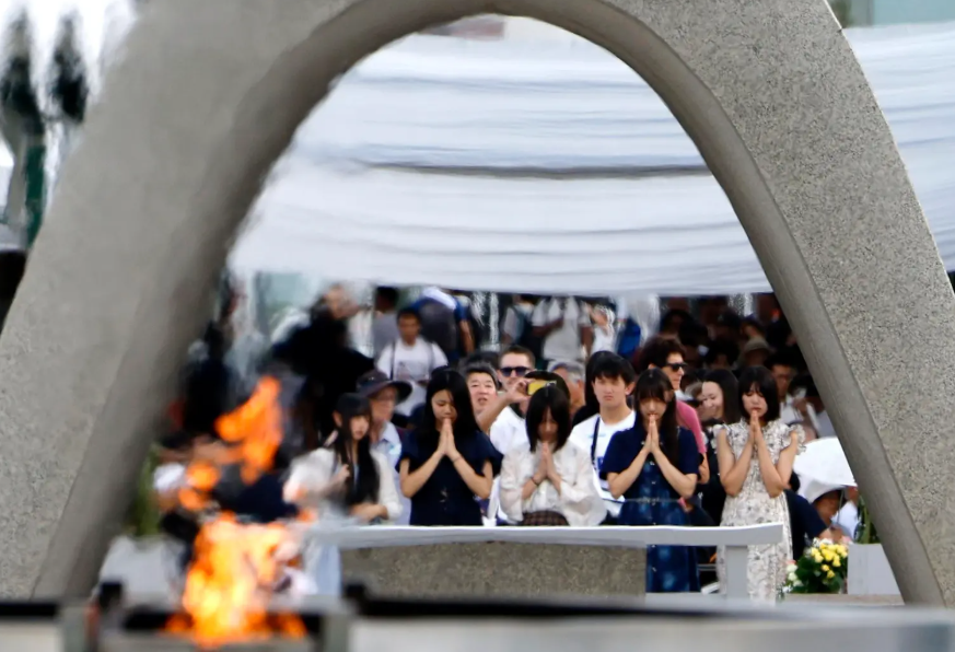 La Campana de la Paz resonó en el Parque Memorial de la Paz de la localidad durante el minuto de silencio observado a las 8:15 h local, la hora exacta a la que la bomba ‘Little Boy’ fue lanzada por el bombardero Enola Gay sobre la ciudad, causando la muerte instantánea de unas 70.000 personas, cifra que se duplicaría a finales de 1945.