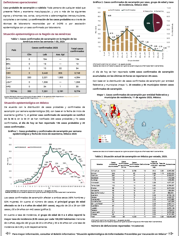 La Secretaría de Salud federal reveló su informe de la situación del sarampión en el país correspondiente al 11 de agosto de 2025
