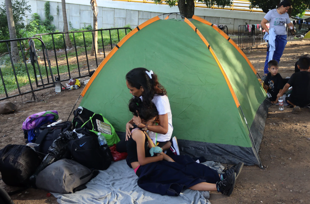 Actualmente, la familia se encuentra en un campamento improvisado en el poblado Viva México, donde duerme hacinada con cientos de migrantes más.