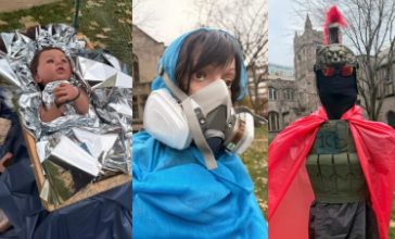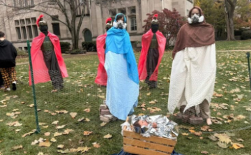 Las máscaras protectoras usadas por María y José aluden a las armas químicas usadas por el Gobierno federal contra la gente en Chicago y Evanston, y no solo contra quienes protestaban, sino además periodistas y miembros de la comunidad, se lamentó “hasta niños que se preparaban para un desfile de Halloween fueron víctimas de la represión con gases.