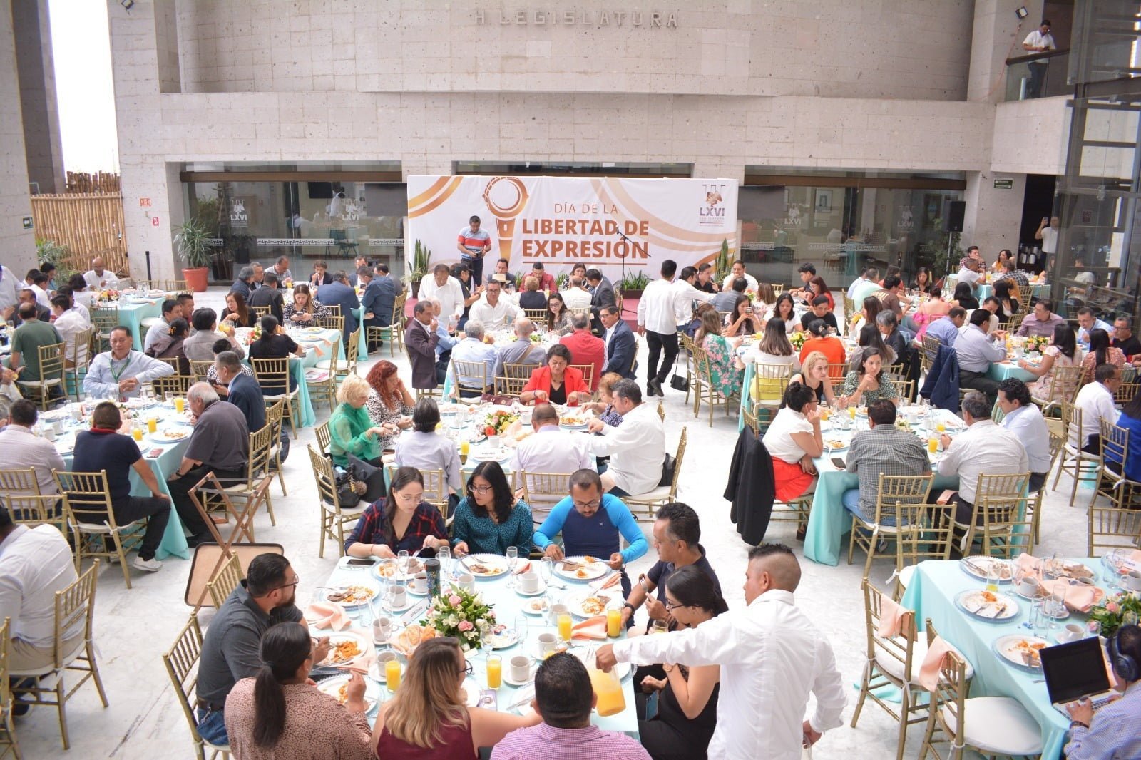 Con motivo de la conmemoración del Día de la Libertad de Expresión, el Congreso del Estado, encabezado por la presidenta de la Mesa Directiva, diputada Margarita Corro Mendoza, y el presidente de la Junta de Coordinación Política, diputado Juan Javier Gómez Cazarín, convivieron con las y los comunicadores de la entidad, principalmente, con quienes cubren cotidianamente las actividades del Poder Legislativo.