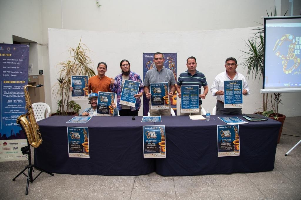 Por su parte, Luis Calatayud Ortíz, organizador del evento, presentó la cartelera que inicia el viernes 1 de septiembre con la exposición “Somos Jazz” que integra artistas plásticos de la región. A las 18:00 horas estará el taller de pintura e improvisación con Octavio Sánchez Oropeza en la Calle del Arte, asimismo el sábado y domingo a las 12:00 horas en el parque San José y Calle del Arte.