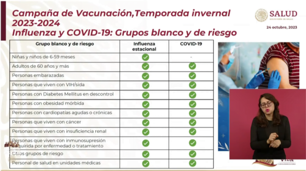 El funcionario de la Secretaría de Salud federal explicó que esta no es una vacunación universal, y que solo está enfocada para grupos de alto riesgo, como población de 60 años y más, mujeres embarazadas y personas con comorbilidades a partir de los 5 años de edad.